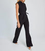 Women Sleeveless Wide Long Pants Jumpuit With Belt.