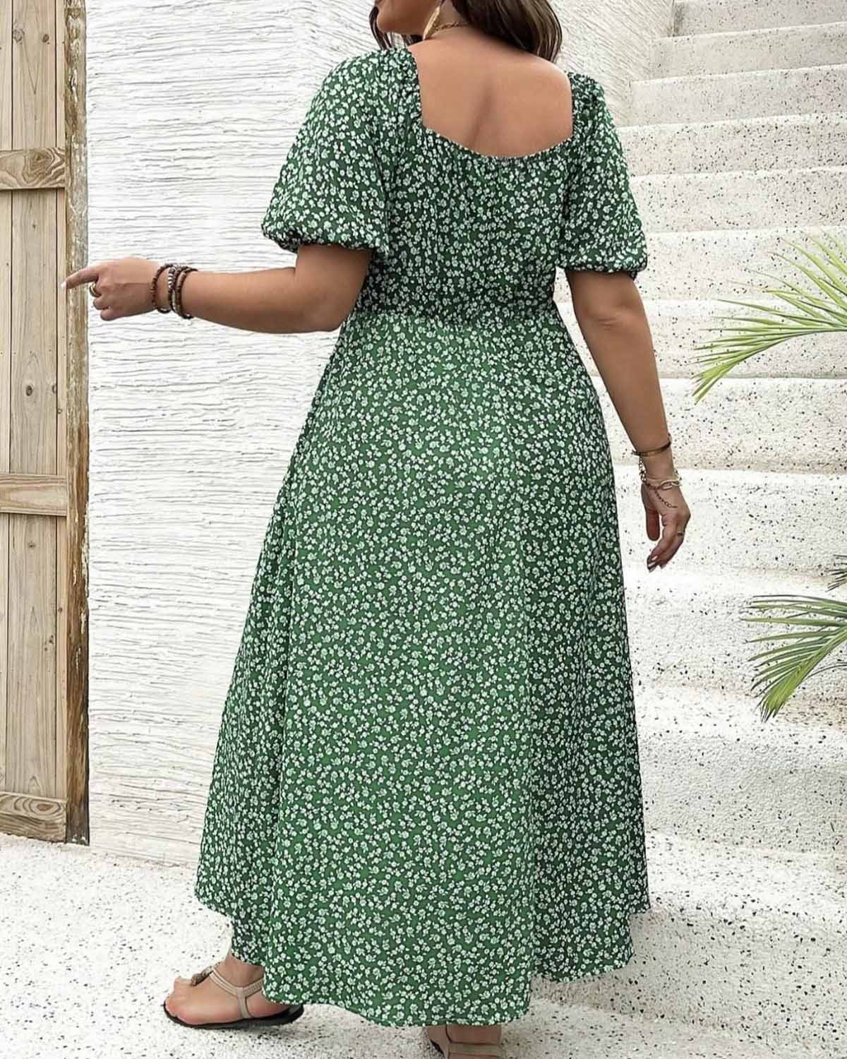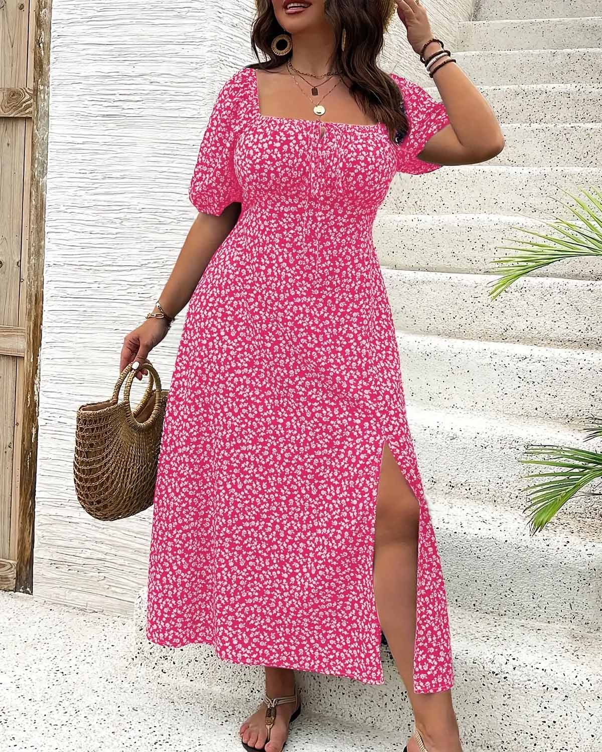 💗Unleash your bold summer style with our Plus-size Short Sleeve Split Floral Print Dress. This head-turning design features a daring split that accentuates your curves while the vibrant floral pattern demands attention.