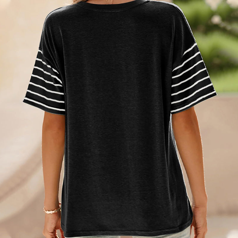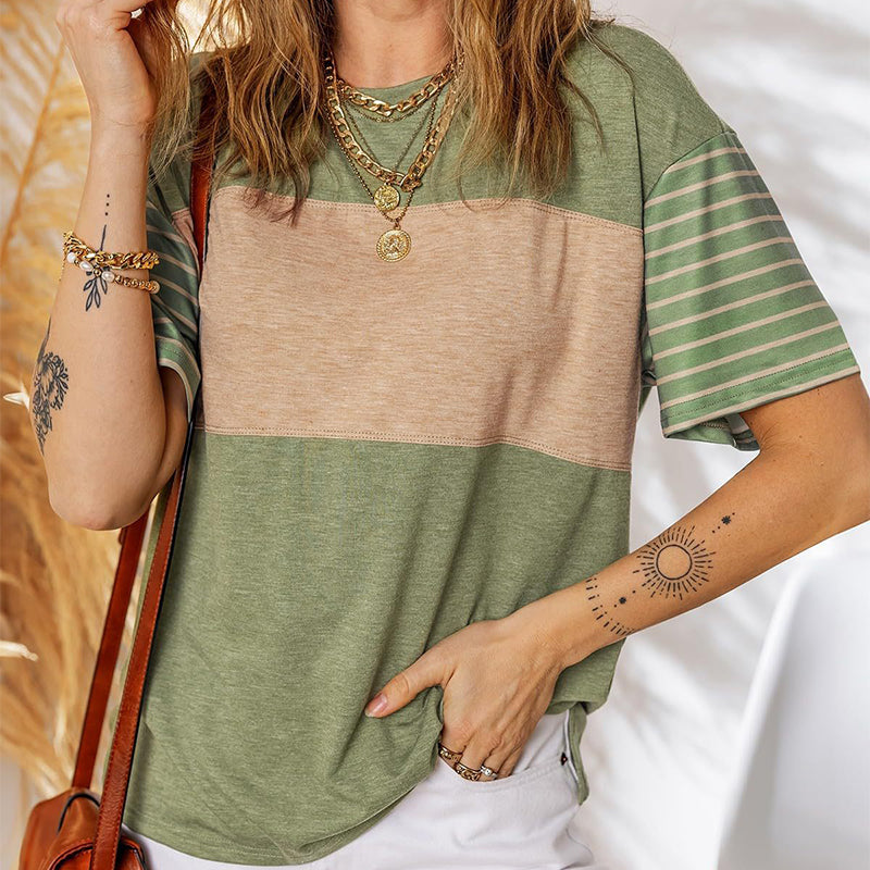 💕Limited Sale 50% OFF💕Women's Casual Round Neck Striped Color Clash Short Sleeve Top