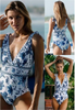 💃Last Day Special Sale 49% OFF🩱V Neck Lace Up Printed One Piece Swimsuit and Skirt