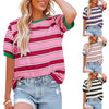 Package Include: 1* Women's Casual Striped Color Block T-Shirt