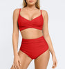 Lounge at the beach or pool in style with the Popilush Ruched High-Waist Bikini Set, designed to offer a sleek and sophisticated look.